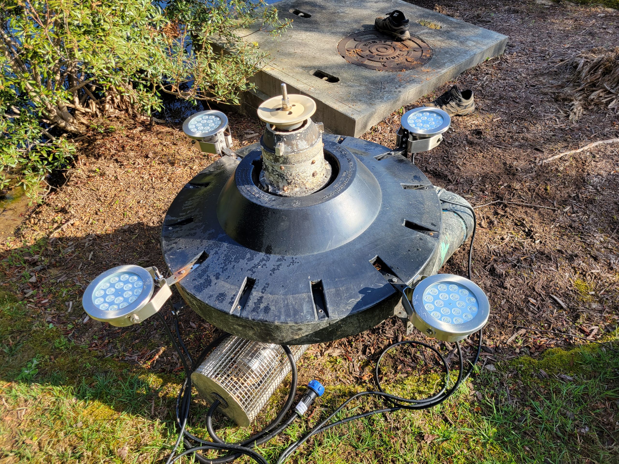 We replaced the motor, motor power cord, and motor control breaker and upgraded the lights to energy-efficient LED lights and a new power cord for them as well. After all the components were received from the manufacturer we installed them and were able to get the fountain back up and running.