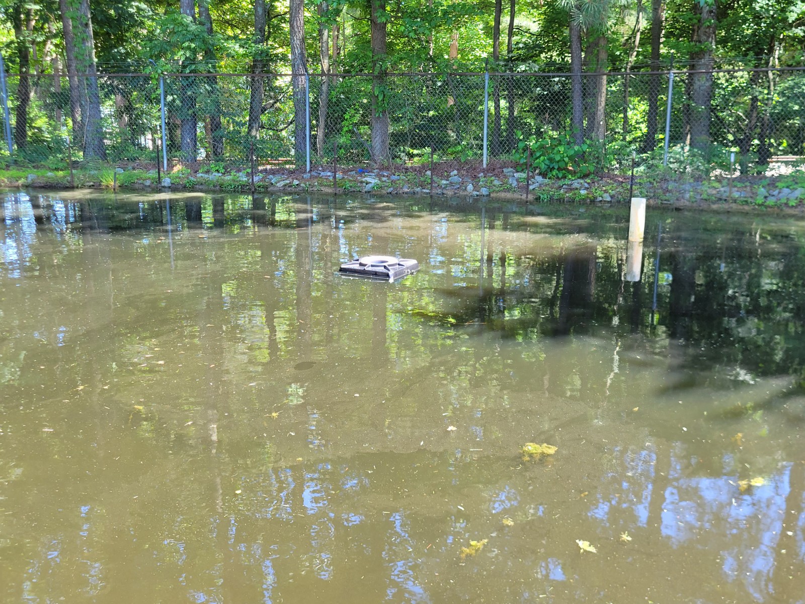 After sending over a couple of options they decided to go with the Bearon Aquatics F1000F aerating fountain. This fountain series comes with a 1 horsepower motor in various power cord lengths. The F1000F will spray water 6′ into the air and then has a diameter of 21′ for the dogs to swim through and enjoy. They will also enjoy the sound of 130 gallons per minute of water spraying out and hitting the water’s surface.