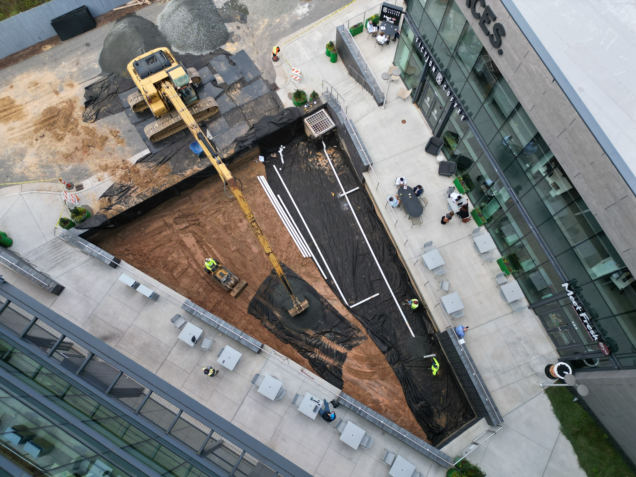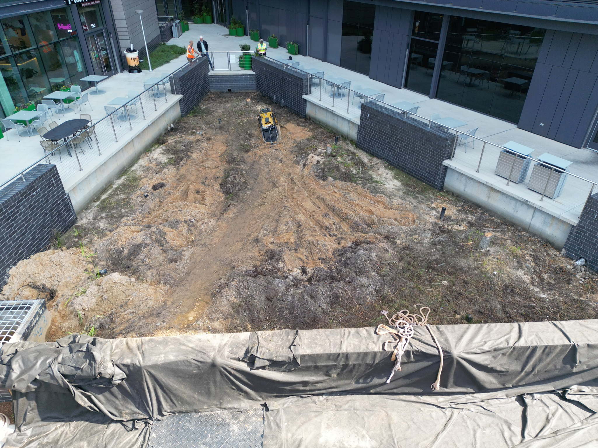 Our dedicated team executed a comprehensive rebuild, removing all existing material, including drains, and meticulously reconstructing each layer. Despite the challenge of working over a decorative retaining wall, the project was completed in just five days. The Crabtree Bioretention Pond now stands rejuvenated, ready to fulfill its intended purpose.